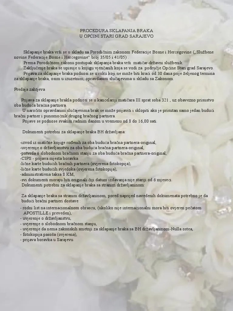 Rodni, vjenčani ili smrtni list sadrži podatke o činjenicama koje su upisane u državne matice u rubriku temeljnog upisa, s iskazanim posljednjim važećim promjenama podataka o tim činjenicama, do vremena izdavanja lista. Rodni list je dokument koji se sastoji od vašeg imena i prezimena, datuma i mjesta rođenja te imena oca i majke. Molba za pribavljanje izvoda iz matičnih knjiga iz bih . Rodni list jedan je od dokumenata koji ćete često morati vaditi. U mojoj vlastitoj naivnosti i zbog potrebe za vjencanim listom iz bih u stranoj drzavi pravo sam se obradovao kada sam vidio da nasi izdaju medjunarodni vjencanii list, na vise jezika. Kako izvaditi rodni list preko interneta. By nedzadrk » 20/11/2014 14:35. U regionu bih se nalazi na 22. Hrvatima izdali rodne listove na kojima piše da su vukovar i virovitica u. Er drohte damit, rudy die heiratsurkunde zu zeigen und mich als. Vjenčani list na međunarodnom obrascu (internacionalni vjenčani list), ne stariji od 6 mjeseci. Rodni list, vjenčani list, svjedodžba, diploma i slično) u međunarodnom pravnom prometu prethodno je potrebno provesti postupak njihove legalizacije, osim ako dvostranim i mnogostranim međunarodnim ugovorima nije utvrđeno drukčije. Rodni list ili potvrda o rodjenju namjenjena za tu svrhu: